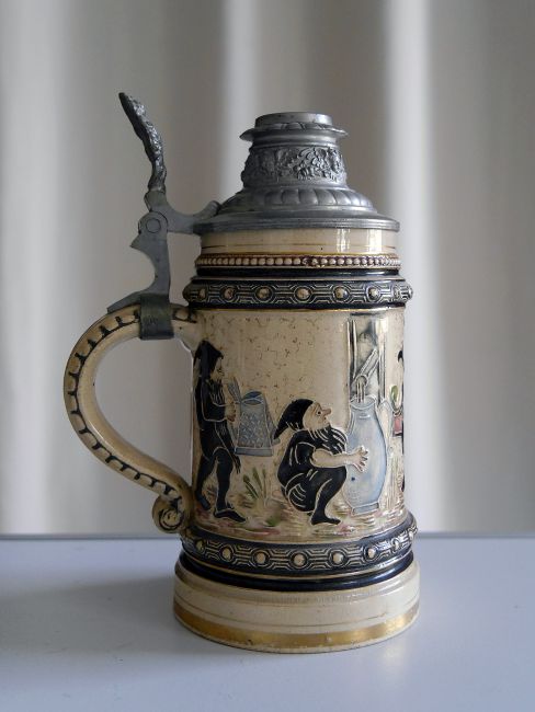 Ten kufel jest bardzo stary… Dostałam go od wujka Stanisława na 18-ste urodziny. I jednocześnie był to prezent z okazji zdanej matury. Dostałam takich kufli aż pięć sztuk. Nie jest wykorzystywany. Stoi sobie jako ozdoba. Myślę, że został kupiony w sklepie z antykami w Bydgoszczy. A pierwotnie został przywieziony z Berlina.