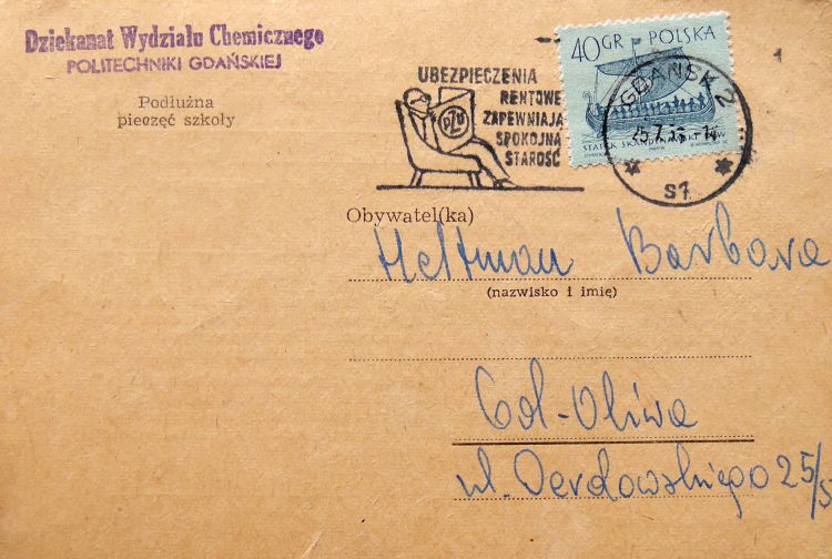 Na prezentowanych zdjęciach widać zawiadomienie, które otrzymałam, informujące o tym, że dostałam się na Wydział Chemii i z dniem 1 października 1966 roku rozpocznę naukę na pierwszym roku.